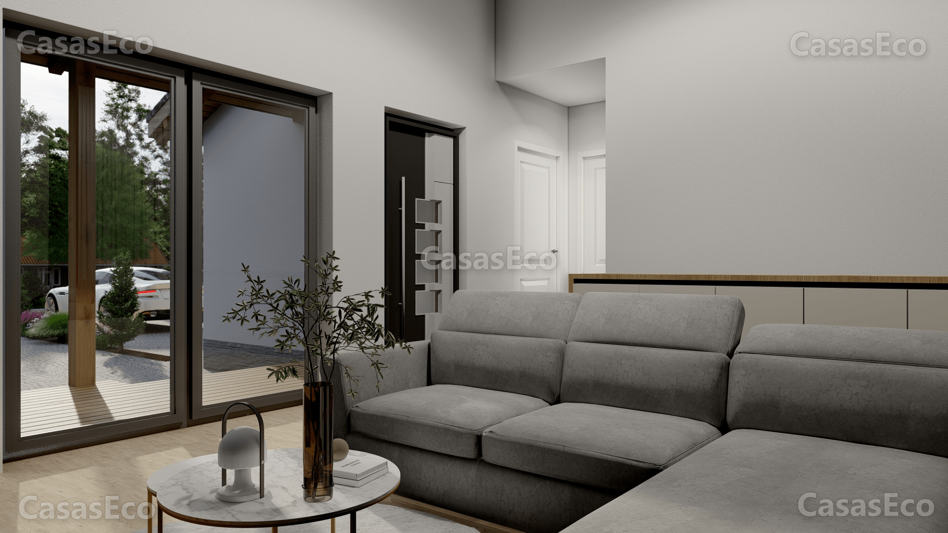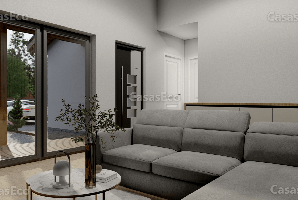El resultado es que usted y su familia tengan una Casa Completamente Ecológica y Eficiente en el consumo y ahorro de Energía, con paredes exteriores desde 32 cm, que incluye diferentes componentes, carpintería PVC triple cristal, perfil 92 mm,7 cámaras.