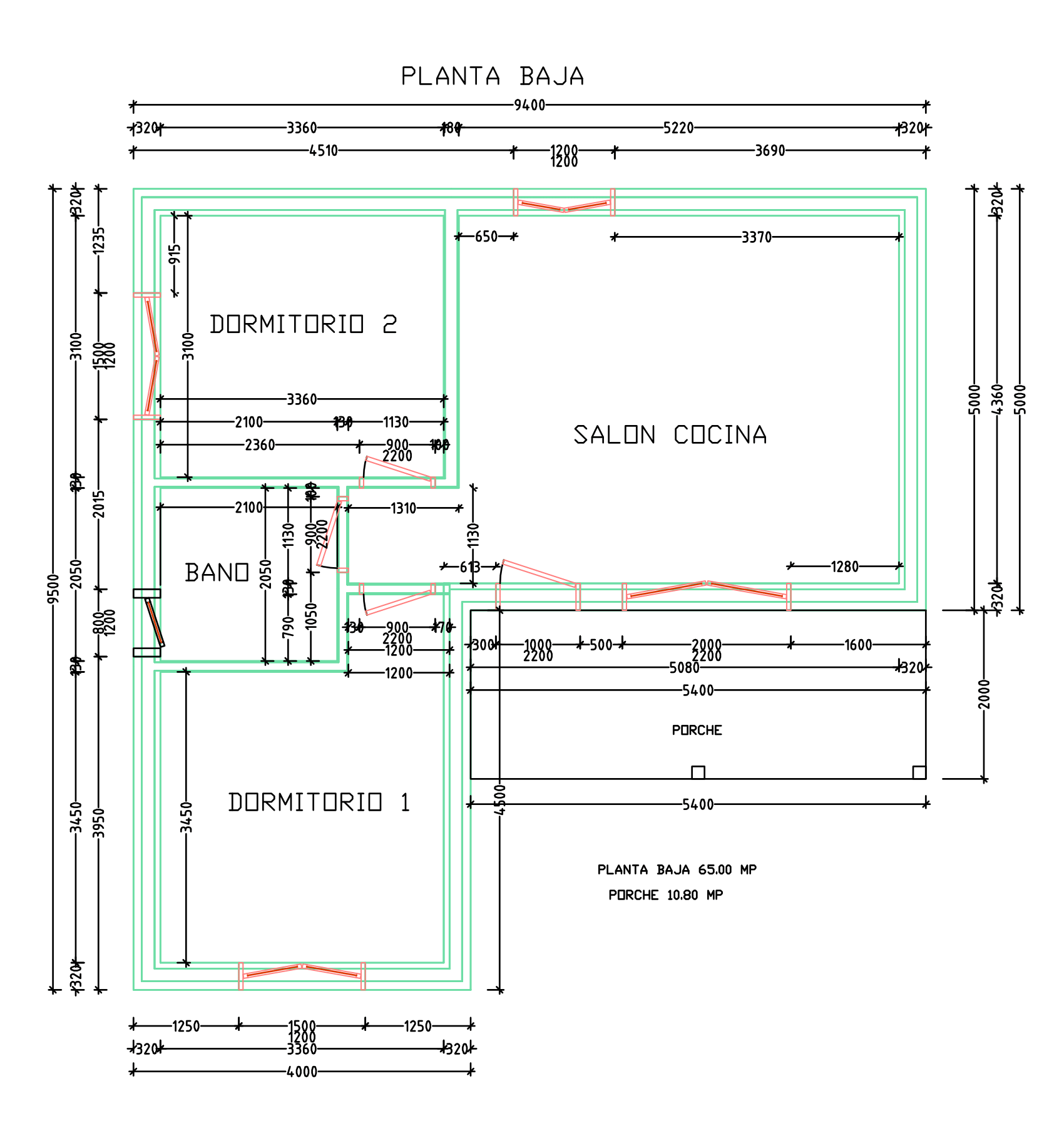 • Distribución: Salón, Cocina, 2 Dormitorios,1 baño,1 Porche