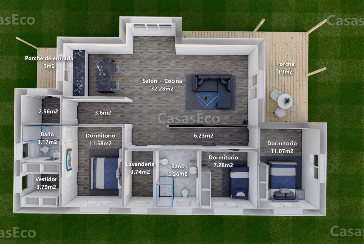 Constructora De Casas Modulares, Modelo Sevilla, 137,50 m² Precios Desde 147.422 € IVA Incluido