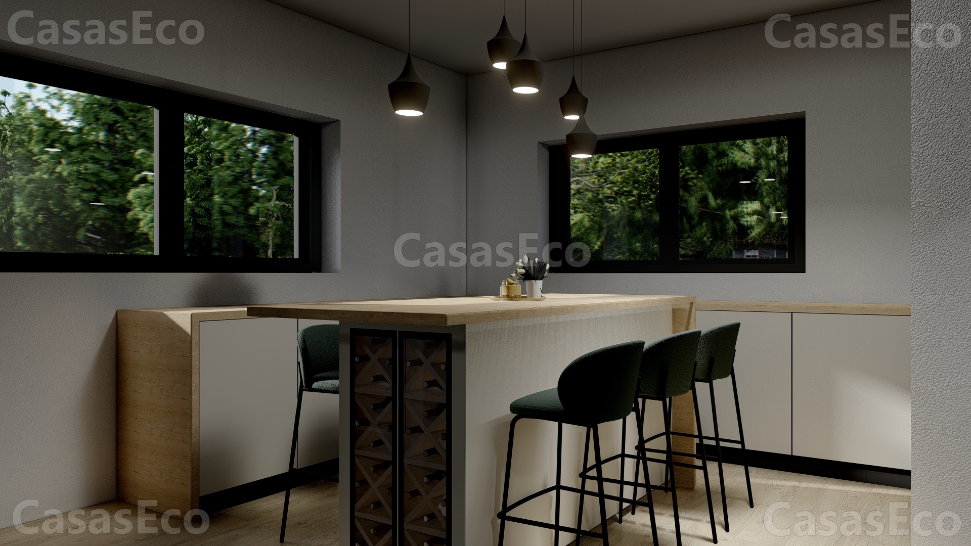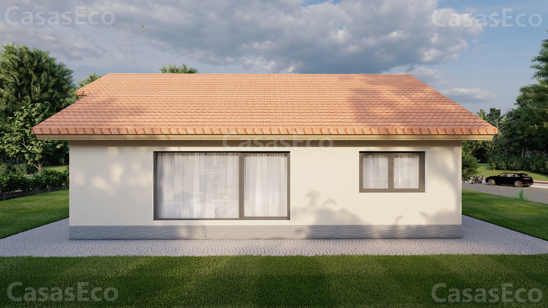 El resultado es que usted y su familia tengan una Casa Completamente Ecológica y Eficiente en el consumo y ahorro de Energía, con paredes exteriores desde 32 cm que incluye diferentes componentes, carpintería de PVC perfil 92mm triple cristal.