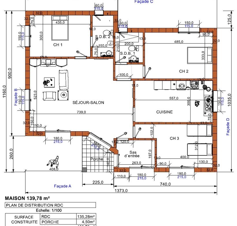 • Superficie total Construida 139.78 m²